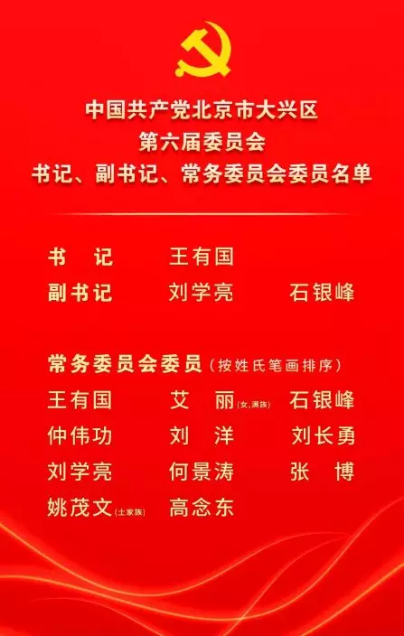 全會以無記名投票方式,選舉了中共北京市大興區第六屆委員會常務委員會委員。