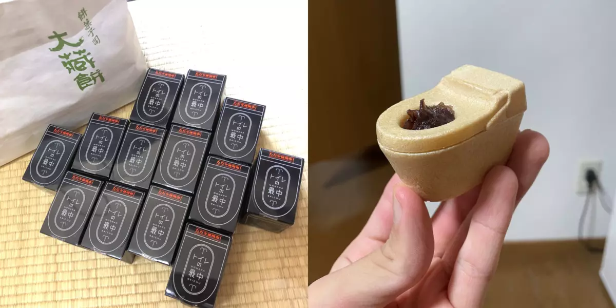 「最中」是日本一種傳統甜點,以糯米烘烤出酥脆的餅皮,再將紅豆餡填入。為保持餅皮的酥脆,通常都會把內餡分開包裝,要吃的時候再自己夾進去。早前,有日本網友則在Twitter上分享了一款來自愛知縣 70年和菓子老店「大藏餅」推出的創意「馬桶最中」。