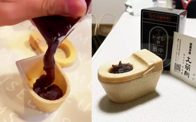 日老店推惡趣味「馬桶最中餅」擠入紅豆餡畫面衝擊