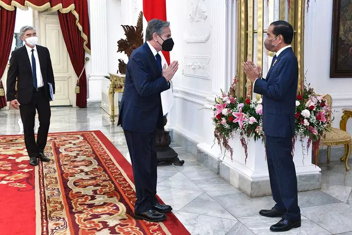 布林肯未落地就被印尼媒體打一巴。AP圖片