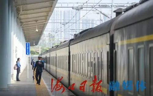 12月10日,海口開往長春的Z386次列車即將發車,兩地人員、貨物已實現常態化便捷往來與運輸。 海口日報記者 康登淋 攝
