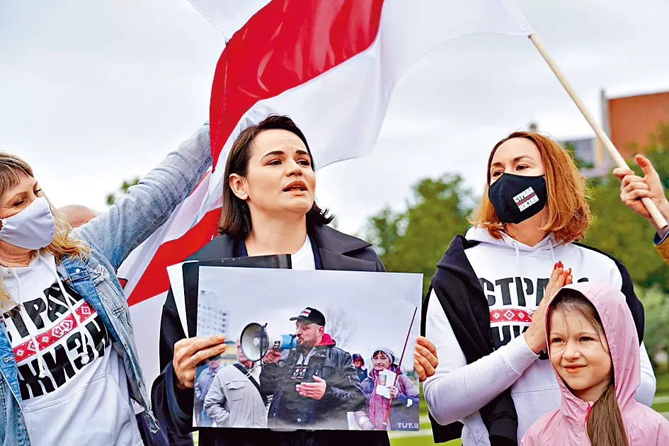 季哈諾夫斯基原本打算在去年八月的總統大選挑戰人盧卡申科,但在選前就被逮捕入獄,當時還是政治新手的妻子季哈諾夫斯卡婭代夫出征。