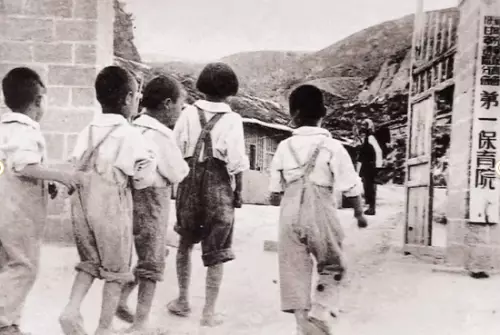 △1920年6月9日,美國哲學家杜威(左七)在張謇(右四)陪同下參觀英化職業學校時留影。