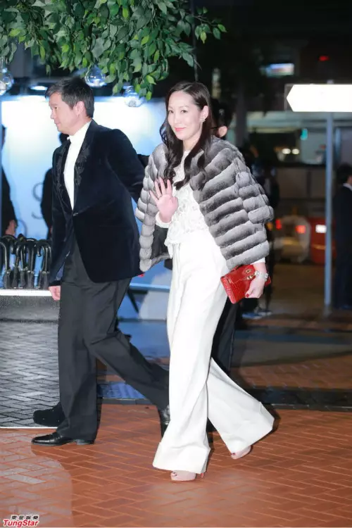 43歲的吳美珩自2008年後隱退娛圈,依然好弗的她與老公王華麟恩愛入場。育有一對仔女的她身材弗爆,保養得宜。另一邊廂,同徐子淇關係好好的黎姿,由另一通道進入會場。當晚著住白色Deep V長裙,索爆現身。