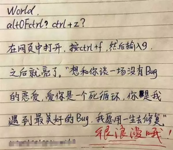 其中一封掀起網友熱議的情書,出自一位IT學霸,他在信中寫道,在網頁中打開,按ctrl+f,然後輸入9,之後就亮了!想要和你談一場沒有bug的戀愛,愛你是一個死循環,你是我遇到最美好的bug,我願用一生去修復。讓老師都忍不住大讚:很浪漫喔!