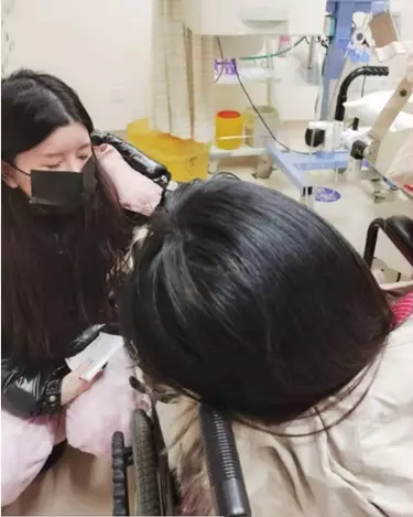 相中Yumi癱軟坐在輪椅。