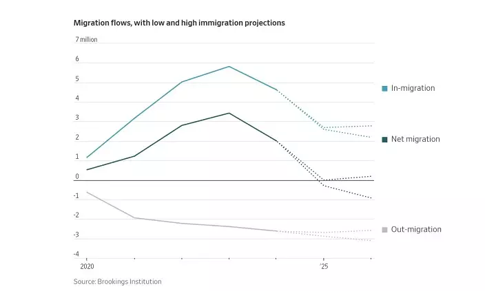布魯金斯學會分析師指出,由於美國官方數據尚未完全反映人口外流情況,因此實際數字可能更高或更低。2025年,美國總移民人數約260萬至270萬,低於2023年近600萬的高峰。