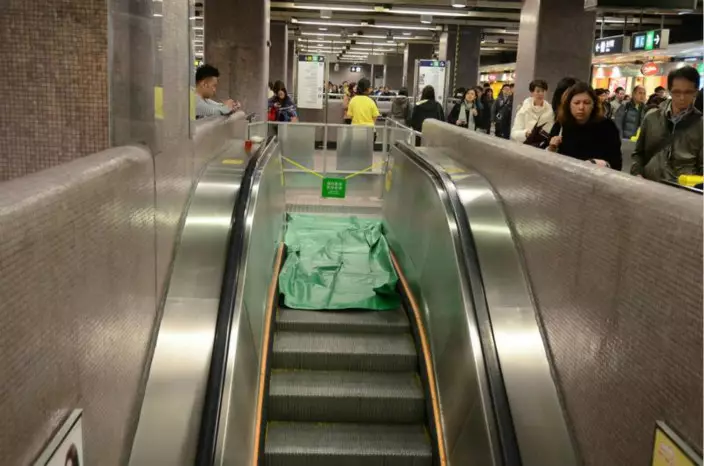 港鐵站又發生「炒電梯」事故!太子站一條扶手電梯梯級傍晚突然炒起,梯梳碎裂,幸無人受傷。