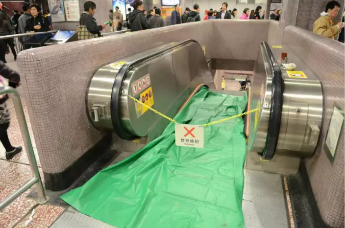 港鐵職員隨即到場了解事件,並封鎖損毀電梯,以布遮蓋損毀部分。