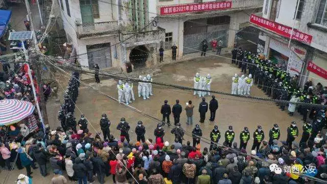 「遊街示眾」視頻顯示,公安荷槍實彈,有大批民眾現場圍觀。廣西官媒報道,前天,靖西警方在安寧鄉等地開展走私、偷渡等涉邊違法犯罪人員「十個一律」現場懲戒警示活動。當日上午八時,一輛掛有「嚴懲涉邊境犯罪行為維護邊疆和諧穩定」「靖西市二○二一年涉邊類案件現場懲戒活動」橫幅標語,載着由八名民警押解的四名涉嫌運送他人偷越國(邊)境罪嫌疑人的敞篷式懲戒宣傳車從城區出發,駛向懲戒活動現場。