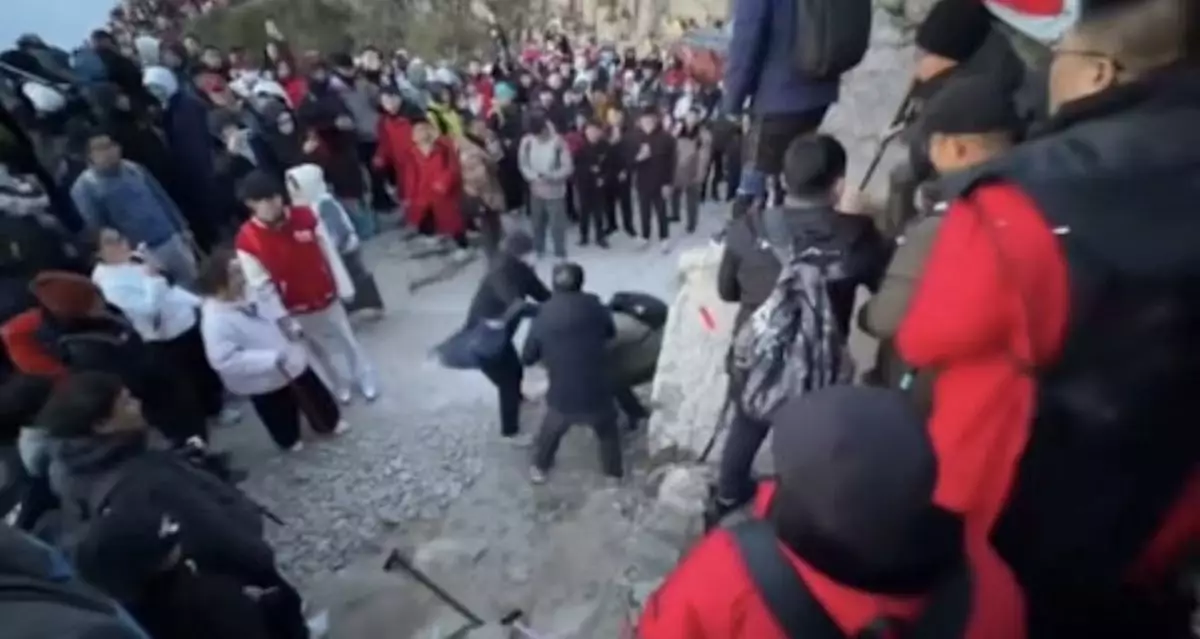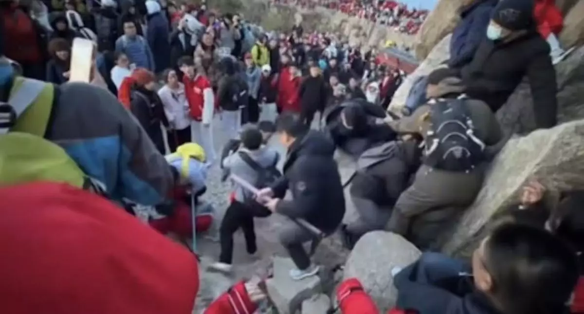 泰山遊客為爭奪觀賞日出位爆肢體衝突,一男子遭飛踢滑落岩石邊險些墮崖,當局事後介入調查並計劃加強管控。