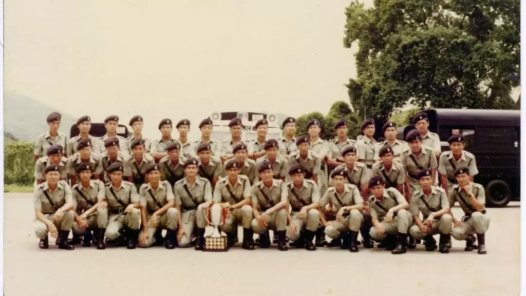 1978年鄧竟成身在警隊機動部隊H連最佳小隊的珍貴合照。