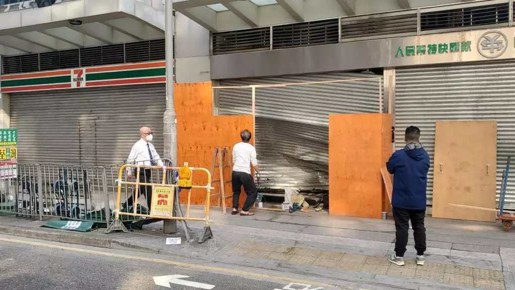 一名女子指示旁觀者後退。閉路電視片段截圖