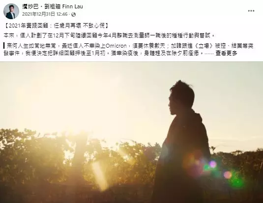 他前日(12月31日)在社交平台回顧2021年的「種種行動與嘗試」,並且透露自己最近染上Omicron變種病毒,需要休養數天,慨嘆「人生如常地無常」,所幸身體能趕及在除夕前痊癒。