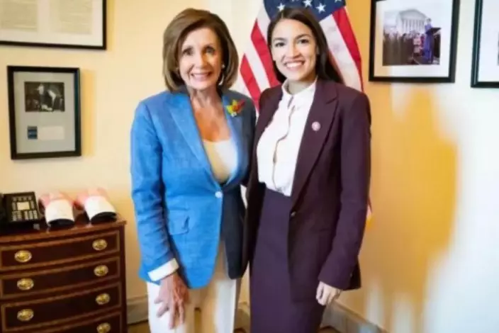 AOC新當選時和民主黨議長佩洛西合影。