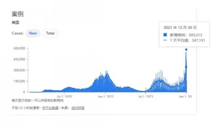 就在兩天前的12月30日,美國新冠新增病例創下了今年以來,甚至過去以來的最高峰,達到了58.5萬例!