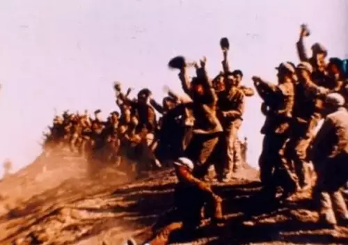 這是一張拼版照片。上圖為:二十世紀六七十年代,右玉縣群眾在荒山植樹(資料照片);下圖為:5月18日拍攝的山西省右玉縣柳溝山的景色(新華社發李秀山攝)。