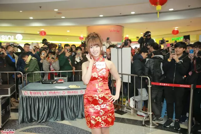 日本性感AV女優波多野結衣穿高衩旗袍出席電玩遊戲活動,天寒地凍仍然晒性感,吸引逾百人迫爆商場,一班支持者睇到好興奮。