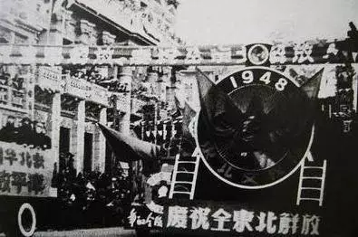 1949年10月14日,廣州解放,國民黨匪徒在撤退時還破壞了珠江大橋!國民黨軍徹底地被粉碎了,鐵甲車也投降了……海軍也投到人民方面來,在軍艦上飄揚著新的旗幟,人民民主中國的旗幟。