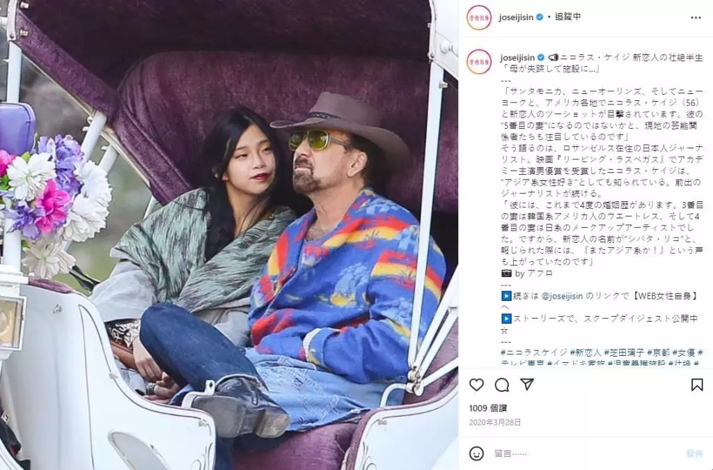 尼古拉斯年前戀上細30年的芝田璃子時,日媒都有報道。