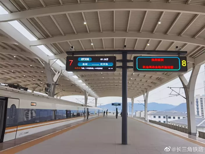 浙江杭州、紹興至台州高速鐵路,今(8日)開通營運,兩地最快63分鐘可抵達。