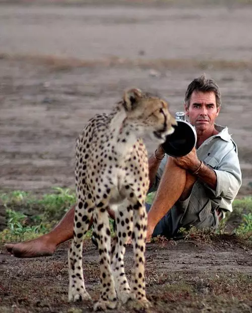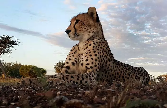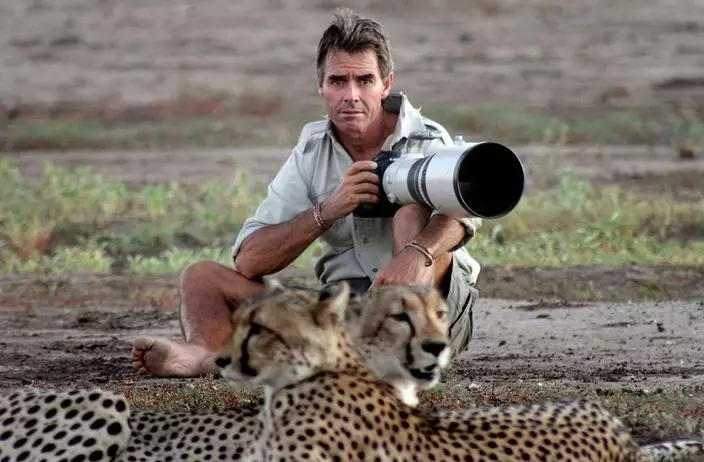 57歲的沃爾哈特(Kim Wolhuter)是南非攝影師和製片人,他在非洲博茨瓦納一處野生動物保護區拍攝,過去六星期接近一個獵豹家庭,包括母豹及四個子女。