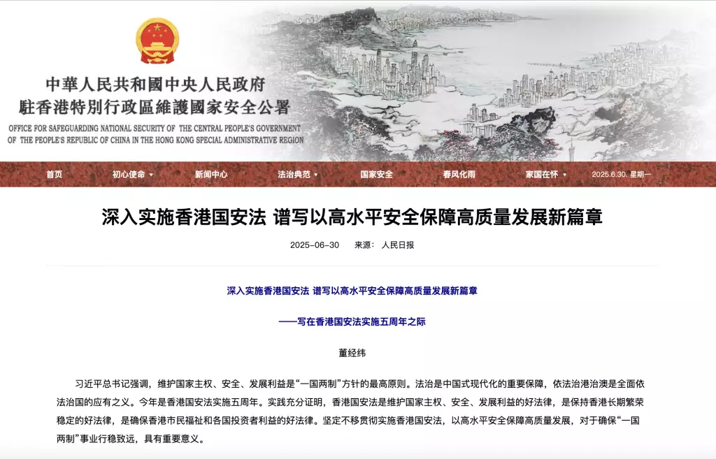 國安法5周年|董經緯:香港面臨實現新飛躍關鍵期 駐港國安公署續與特區堅定維護國家利益